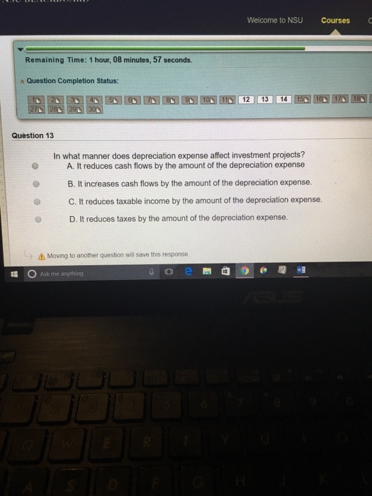 Dit reduces taxes by the amount of the depreciation expense. In what manner does depreciation expense affect investment projects. It reduces cash flows by the amount of the depreciation expense.